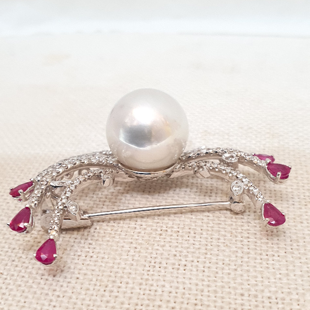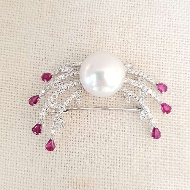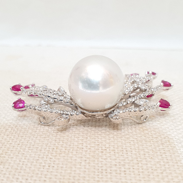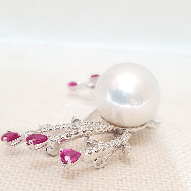 상태 : 18k 천연양식진주 천연루비 써브다이아몬드 로 예쁘게 디자인 되었네요.