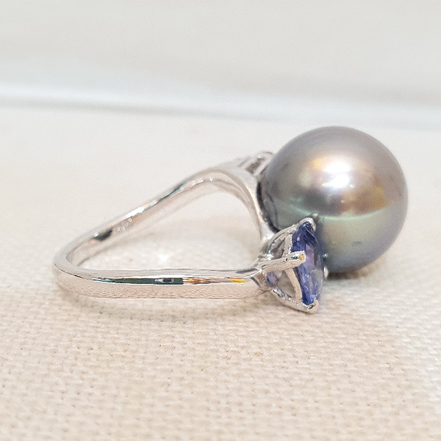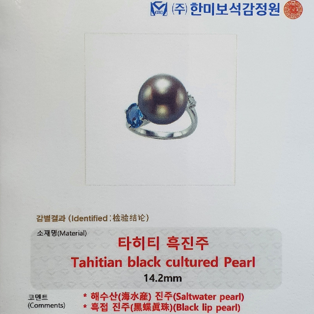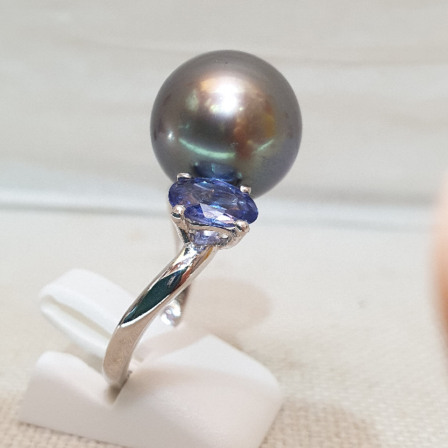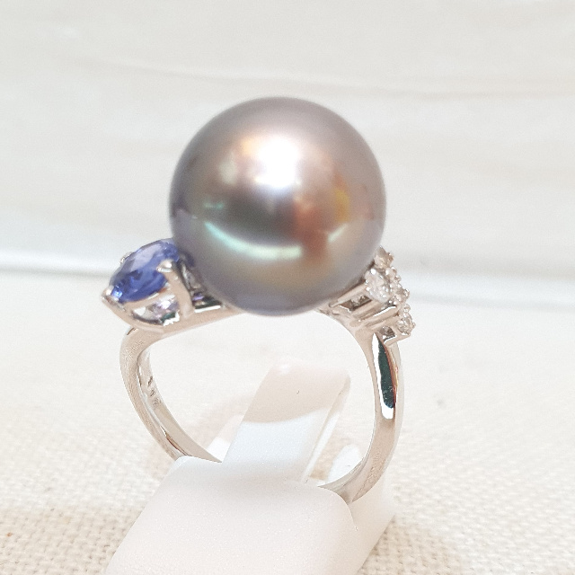 상태: 18k, 14.2mm 흑진주 , 천연사파이어, 다이아몬드 로 디자인 반지입니다.