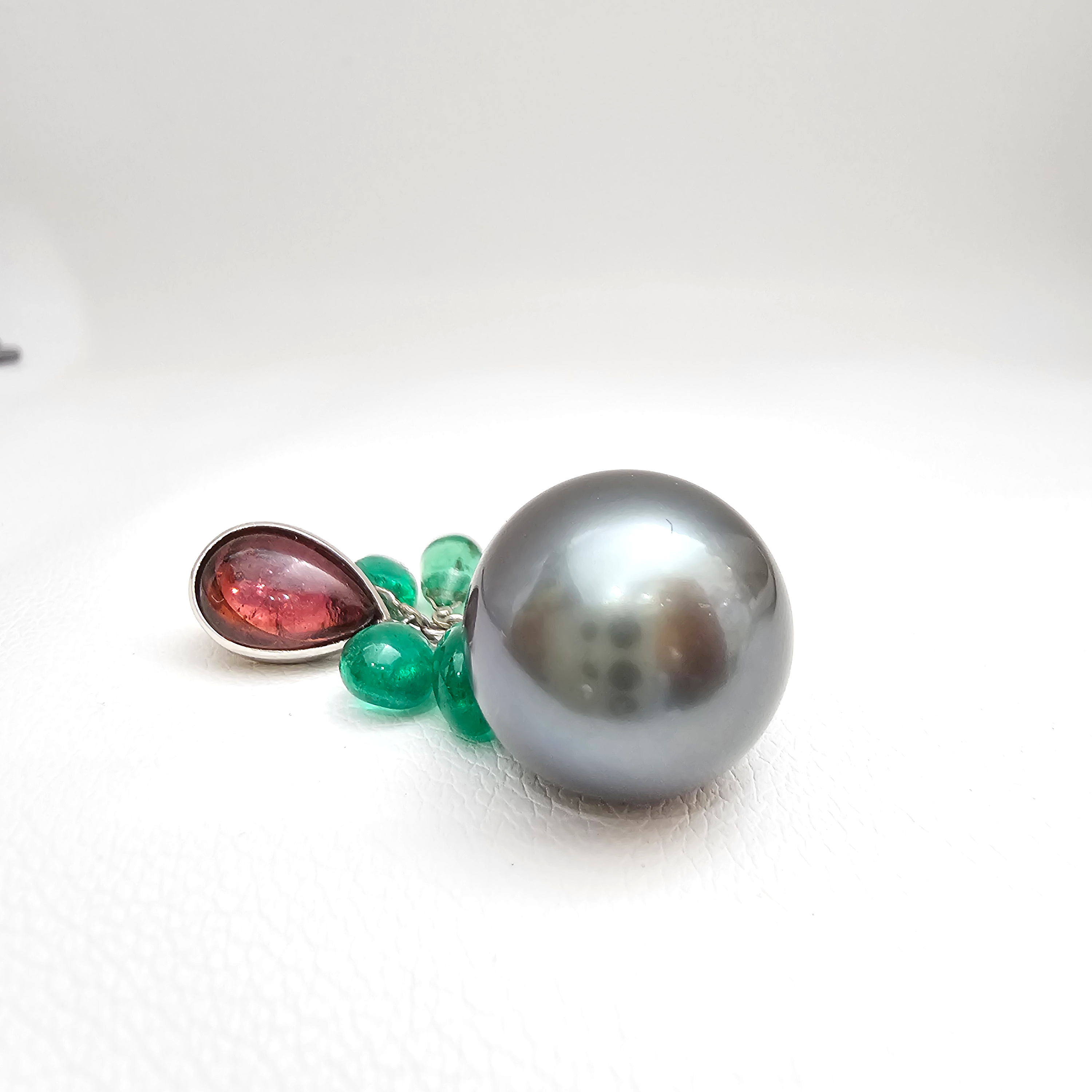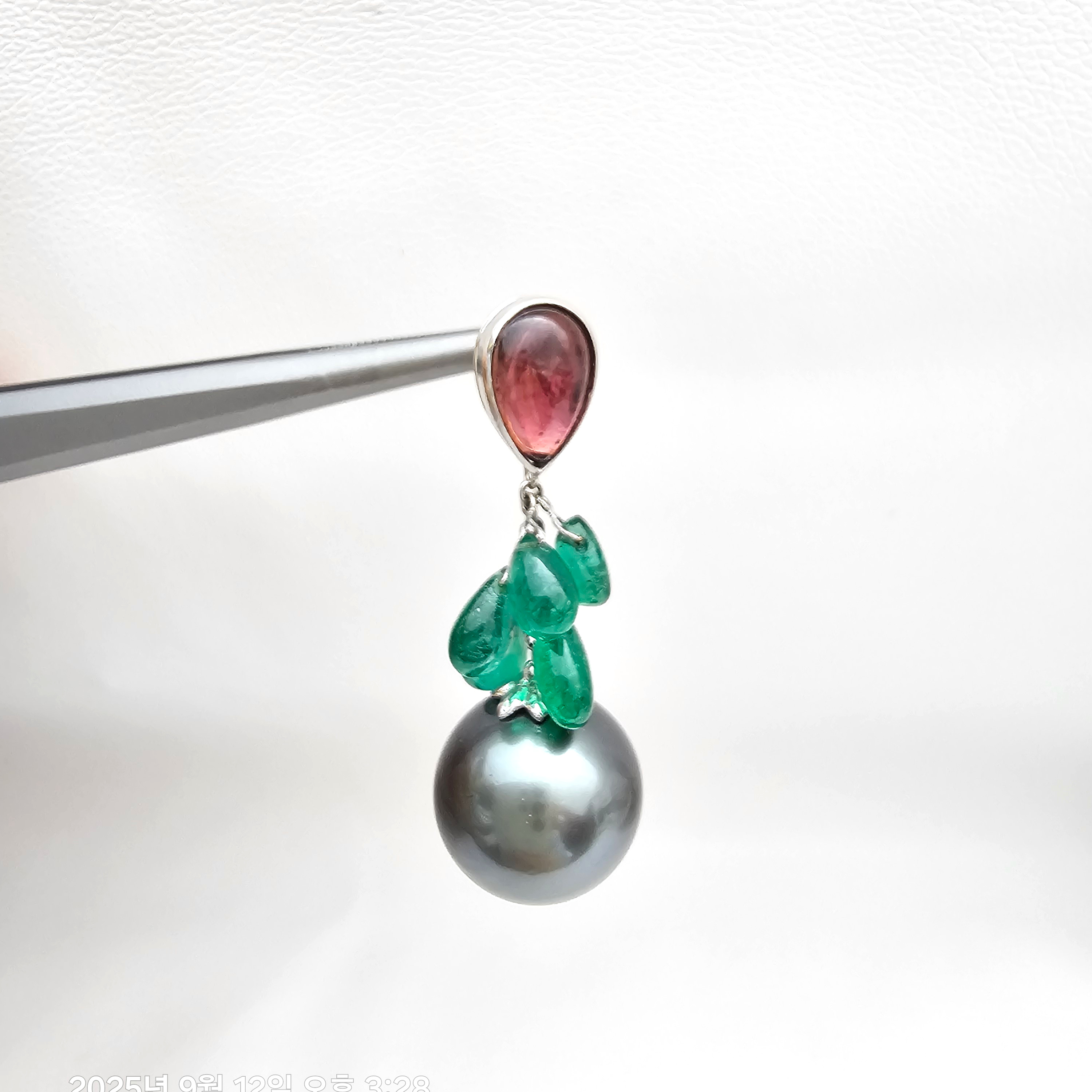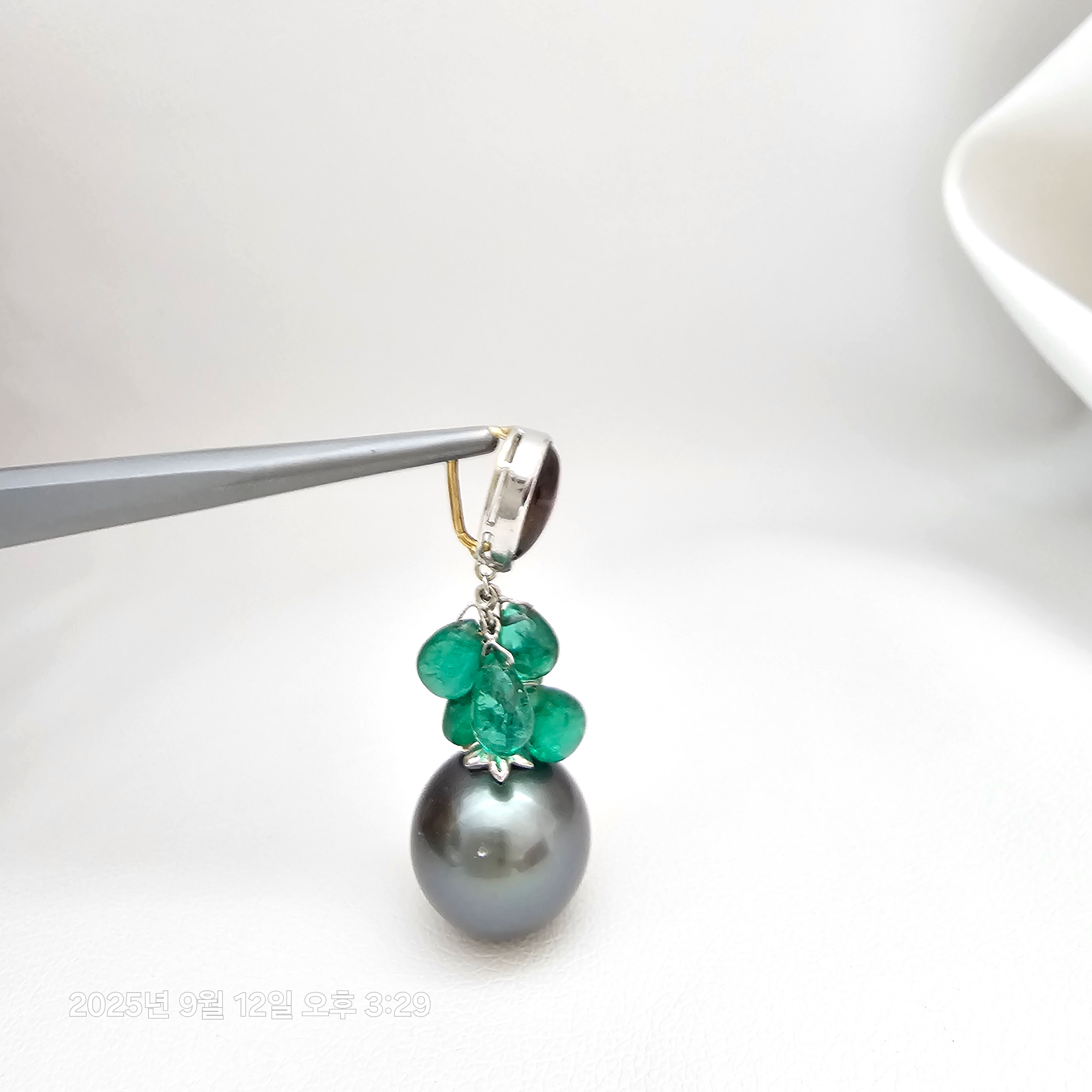 상태: 18k 투어멀린, 에메랄드, 흑진주 13.36mm 상태 좋아요.