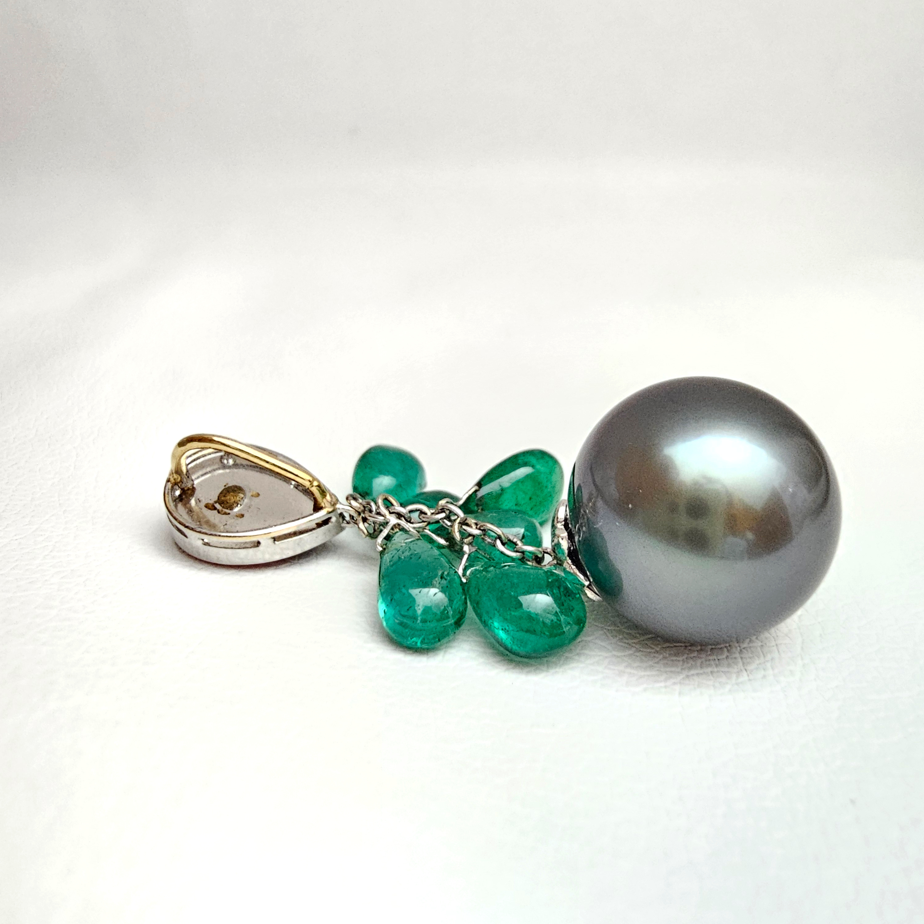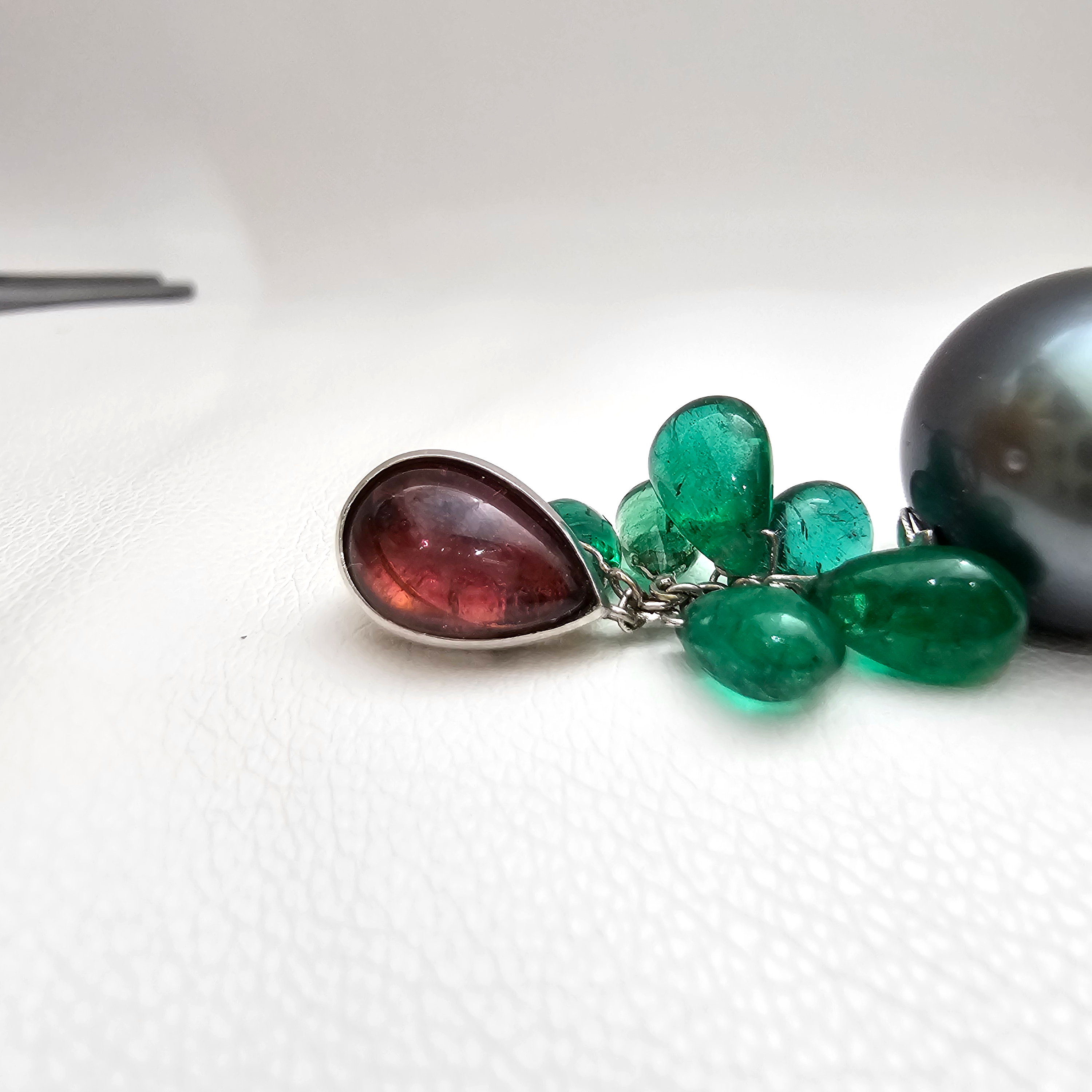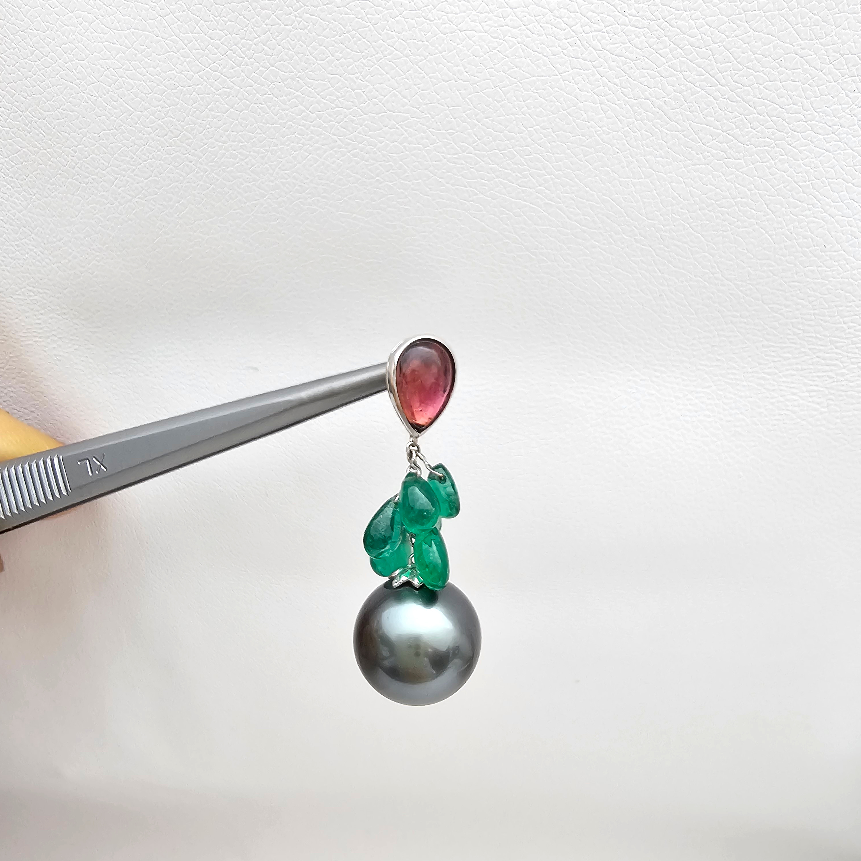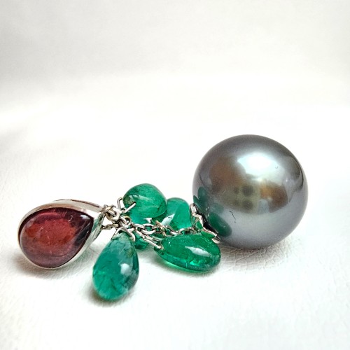상태: 18k 투어멀린, 에메랄드, 흑진주 13.36mm 상태 좋아요.